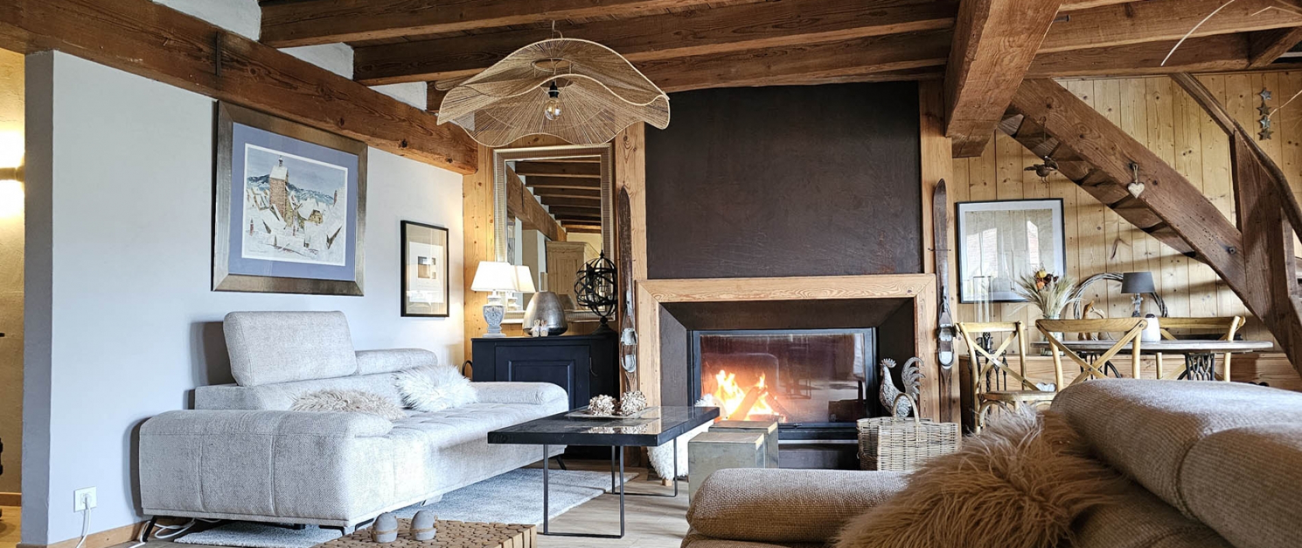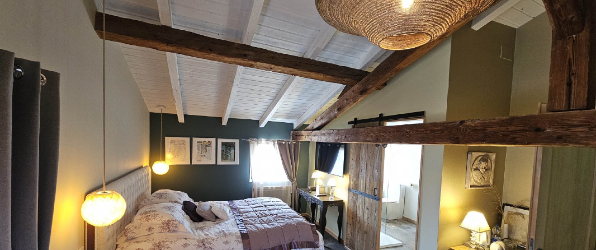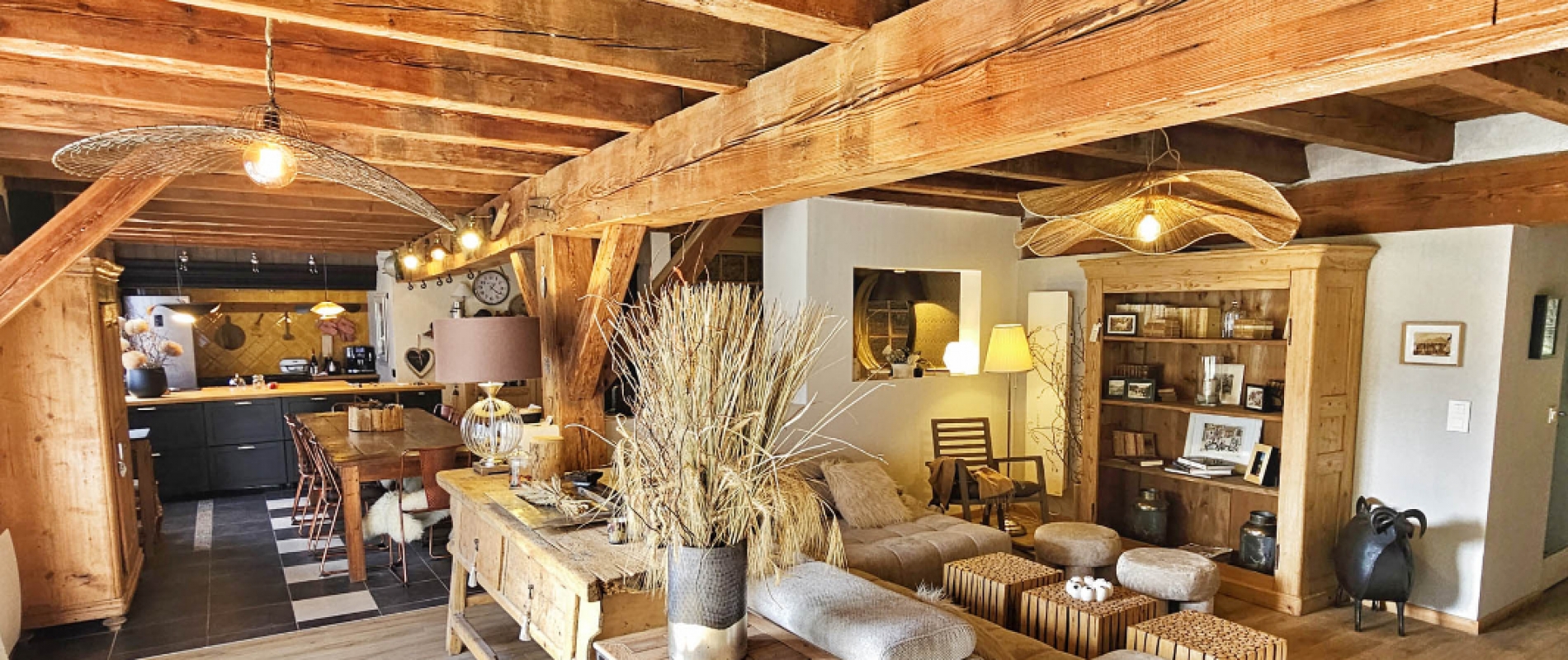 Privatizing la Grange du Couvent allows you to have, in addition to all rooms , the large equipped kitchen, the terraces and the garden, the garage and the living room with its panoramic fireplace.