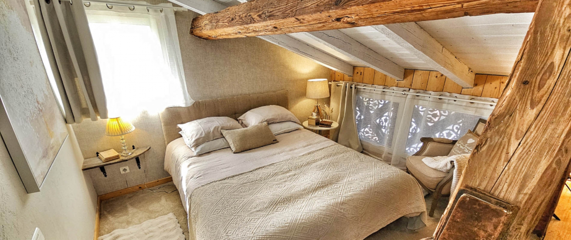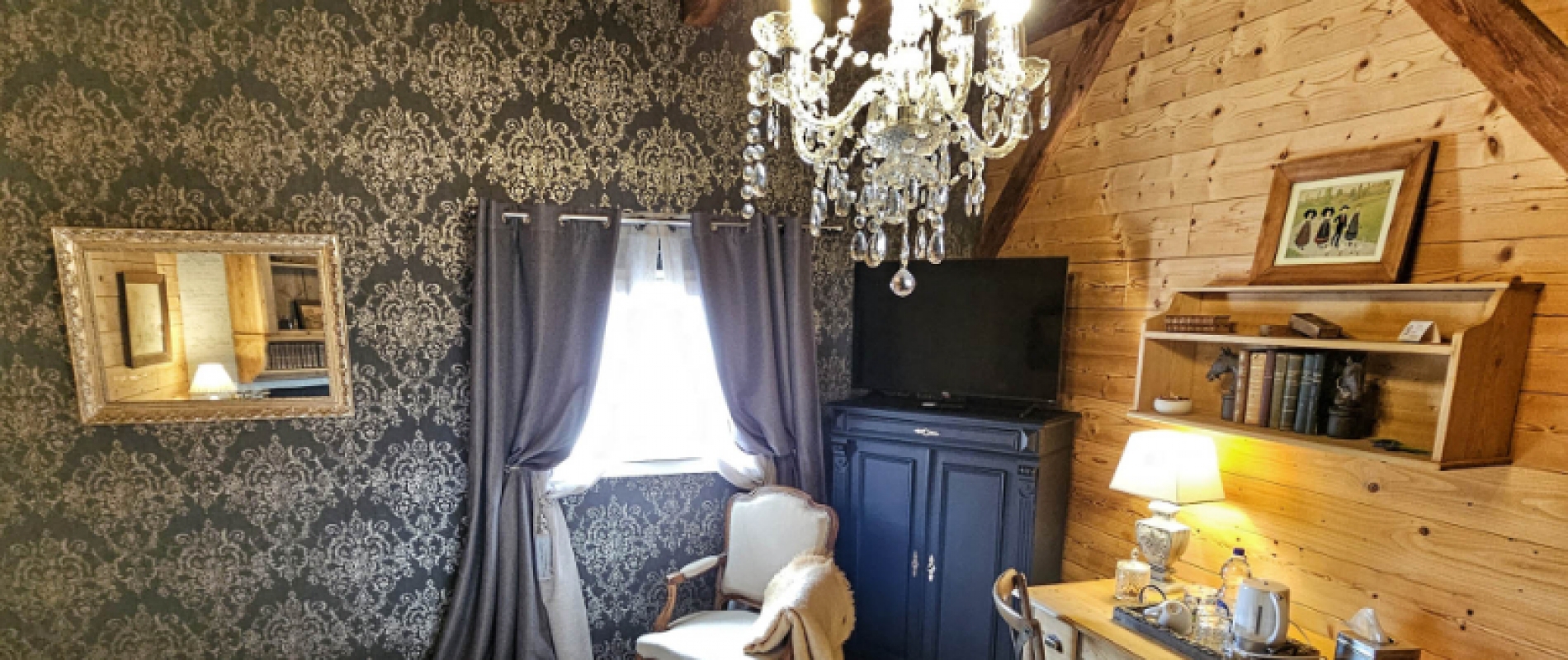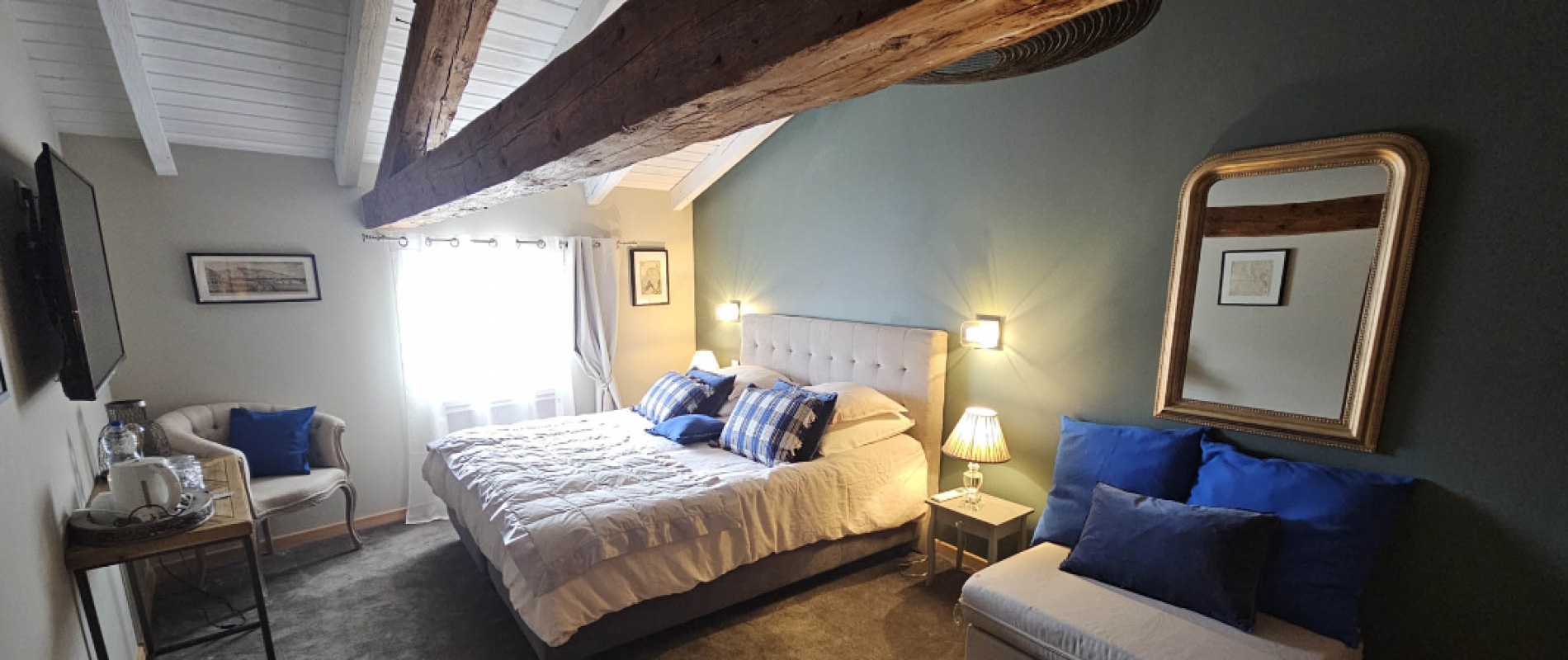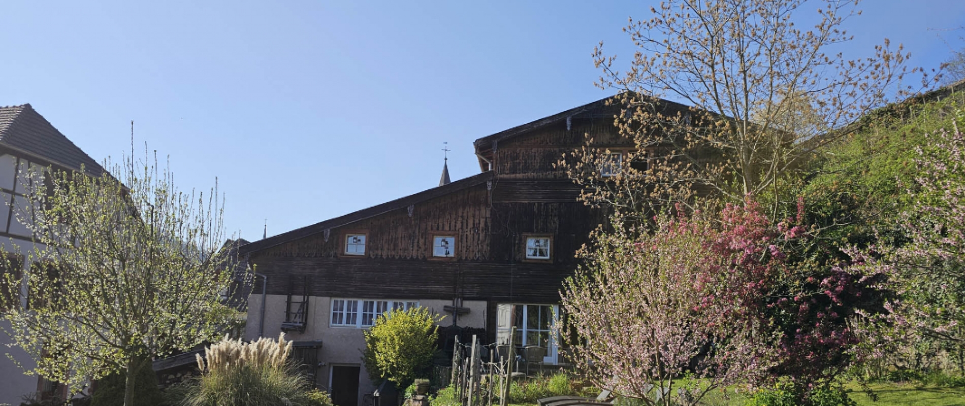 Privatizing la Grange du Couvent allows you to have, in addition to all rooms , the large equipped kitchen, the terraces and the garden, the garage and the living room with its panoramic fireplace.
